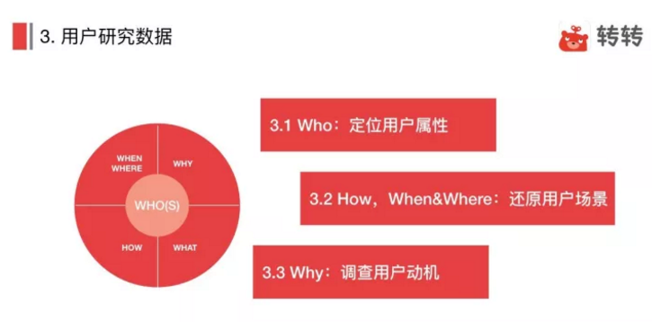 在对用户的描述和还原上,以 5W1H 框架拆解,来回答「因为什么,谁在什么时间什么地点 采取什么样的方式 做了什么事情」。大数据在用户研究的应用,本质上就是利用数据,去描述上面的内容,从而还原用户当时当刻的使用场景。具体可落实到以下三个具体方面: