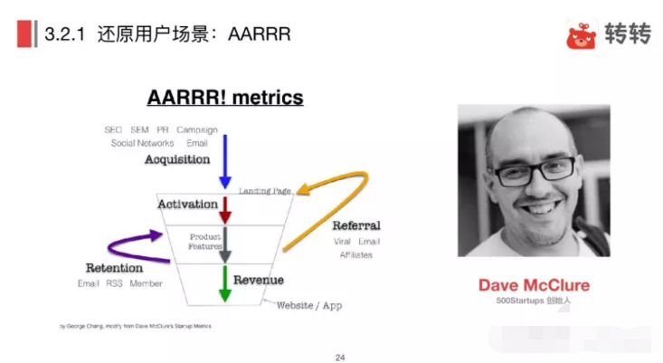漏斗又可以根据周期长短分为长漏斗和短漏斗。长漏斗涉及周期较长,在新用户归因,用户生命周期研究中多有采用。AARRR 本质上是对用户生命周期的长漏斗分析。