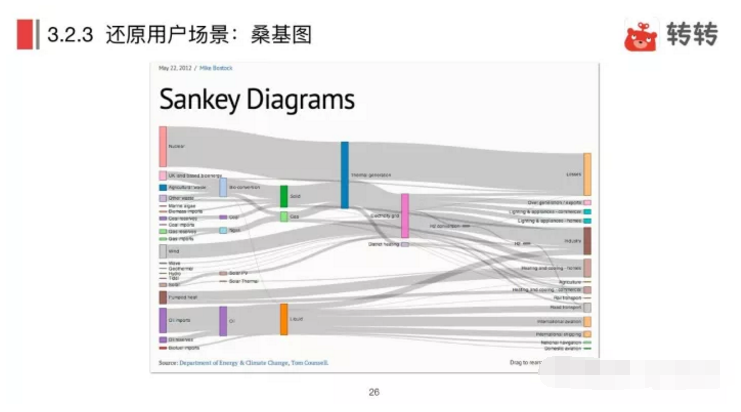 轨迹分析首见于 Google Analytics ,图形名为桑基图。当用户没有明显的操作顺序时,或者当需要研究各个页面间流转情况时,这种图便可派上用场。另外,在表达各种「主体多目的迁移」的场景下,桑基图也适用,如居民在各大城市间的迁移,电商用户在各大品类间的迁移现象等等。