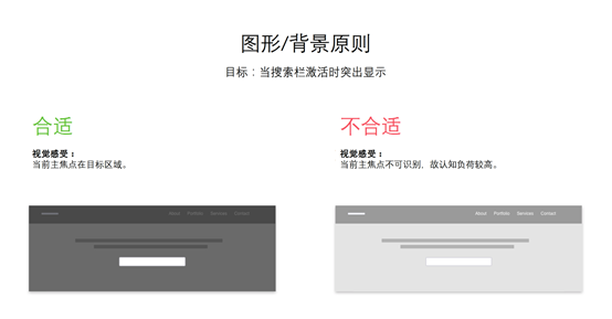 “图形/背景原则”由Andy Rutledge提出,说的是“人们既可以将元素看作图形(聚焦的独特元素),又可以看作背景(图形所倚靠的背景或环境)”。当我们想在界面中改变焦点时,这个原则就非常有用了。