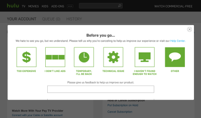 Hulu表达了他们理解用户为什么取消服务。