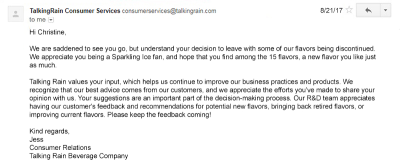 即使反馈是负面的,Talking Rain也会感谢用户。