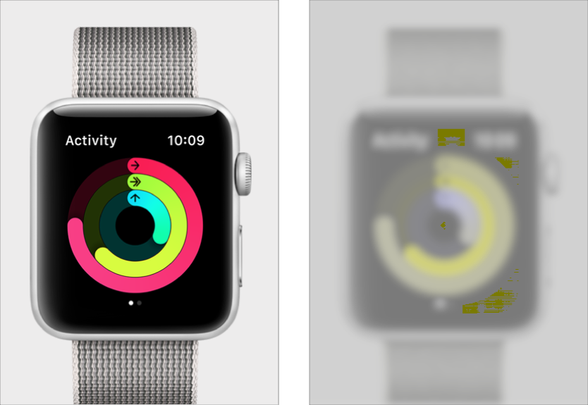 这是同一个的Apple Watch屏幕截图,左图未处理,右图为通过滤光器模拟狗狗的视觉画面,展现了相比大多数人类,狗狗在色觉、亮度和锐度感知上的局限。可以看到,这里的UI环只能凭借颜色辨别,没有第二种辨认方式。 - 避免使用汉堡包菜单。