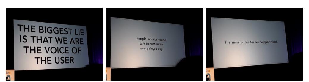 (最大的谎言就是——我们是用户的代言人)、(销售团队的人每天都在跟用户交谈)、(技术支持团队也一样)