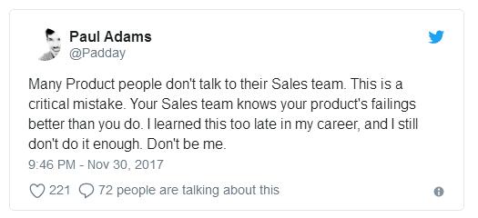 不要做保罗亚当斯,多与你的销售团队联系。 - 我们是时候应该停止过多的关注我们在团队中的角色,转而更多的关注如何在公司内部开展更好的合作。