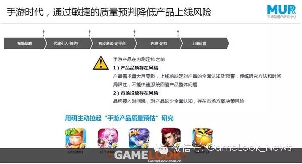 为什么要强调手游产品质量预判的研究呢?我们可以看到端游研发周期和生命周期都是非常长的,一款端游的上市,前期的打磨可以达到两到三年,端游的运营时长,有的甚至可以达到四到五年。手游不一样,在现如今的手游时代,我们看到产品的开发是非常敏捷的,有时候只要三个月产品就上市了,不可能像端游那样做很多慢的项目,做产品的优化。
