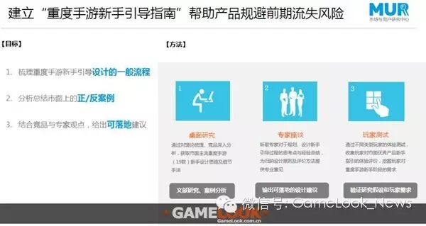 我们希望通过这样的研究,来帮助这款手游产品建立重度手游新手引导的规范和流程,帮助他们总结正反的案例,给出一些类似设计指南这样的东西。