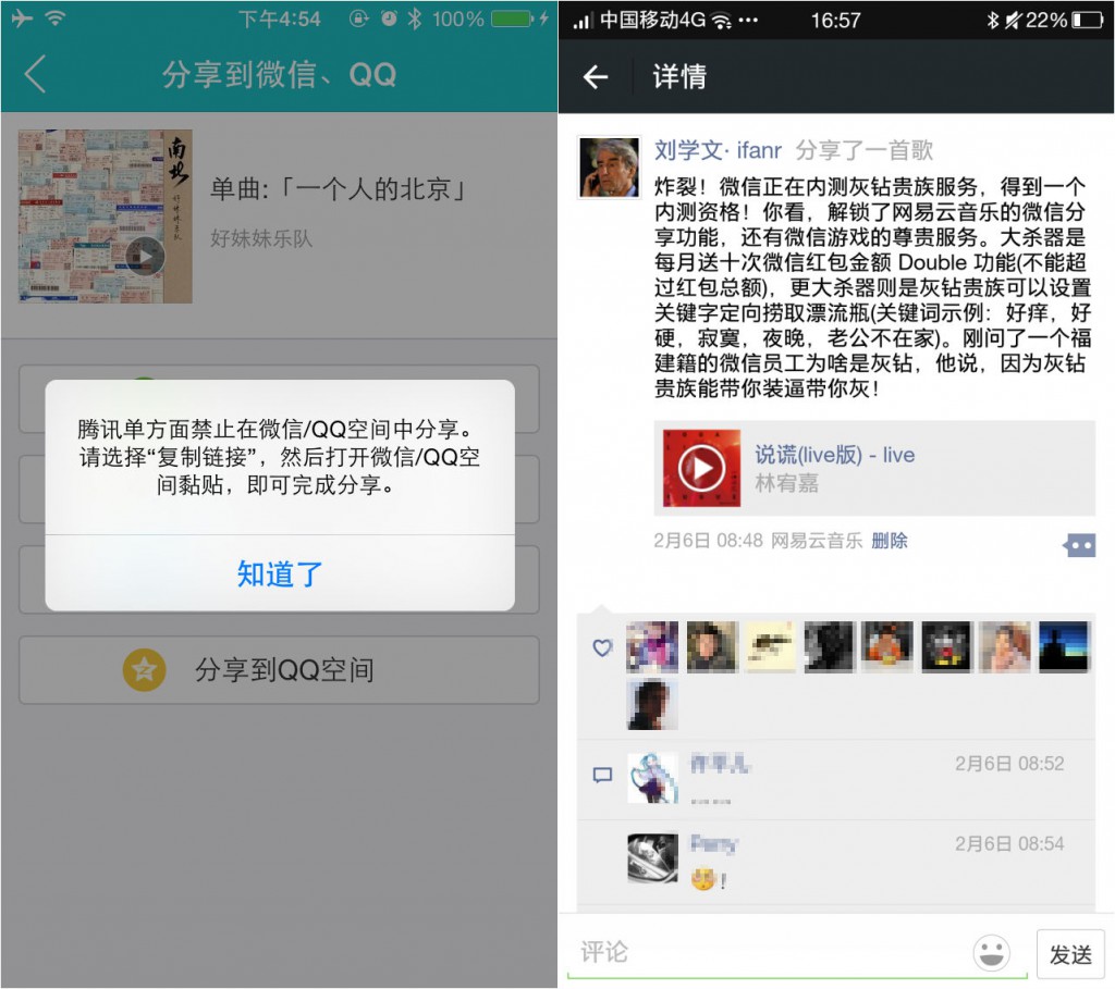 按照一般的节奏,像微信微博这样的应用,版本开发进度是要晚于 iOS 和 Android 版的,不过由于这两个应用的基础功能已经非常完善,而 iOS 和 Android 更新基本上是奔着越来越臃肿的路子去,所以有时候 WP 版本的慢半拍反而不失为一件好事。比如前不久微信屏蔽了网易云音乐等音乐播放器的分享功能,但是其实当时 WP 手机仍是可以分享到朋友圈并直接播放的。
