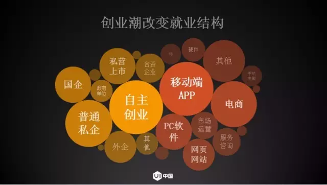 在过去,大型互联网公司的UI设计师人数占行业人数大多数,而现在创业型公司里的UI设计师占到了大多数。创业大潮改变了UI设计行业的就业结构,大部分企业的创业者认为他们在一开始,就需要找一个UI设计师。UI设计的价值正在提升。